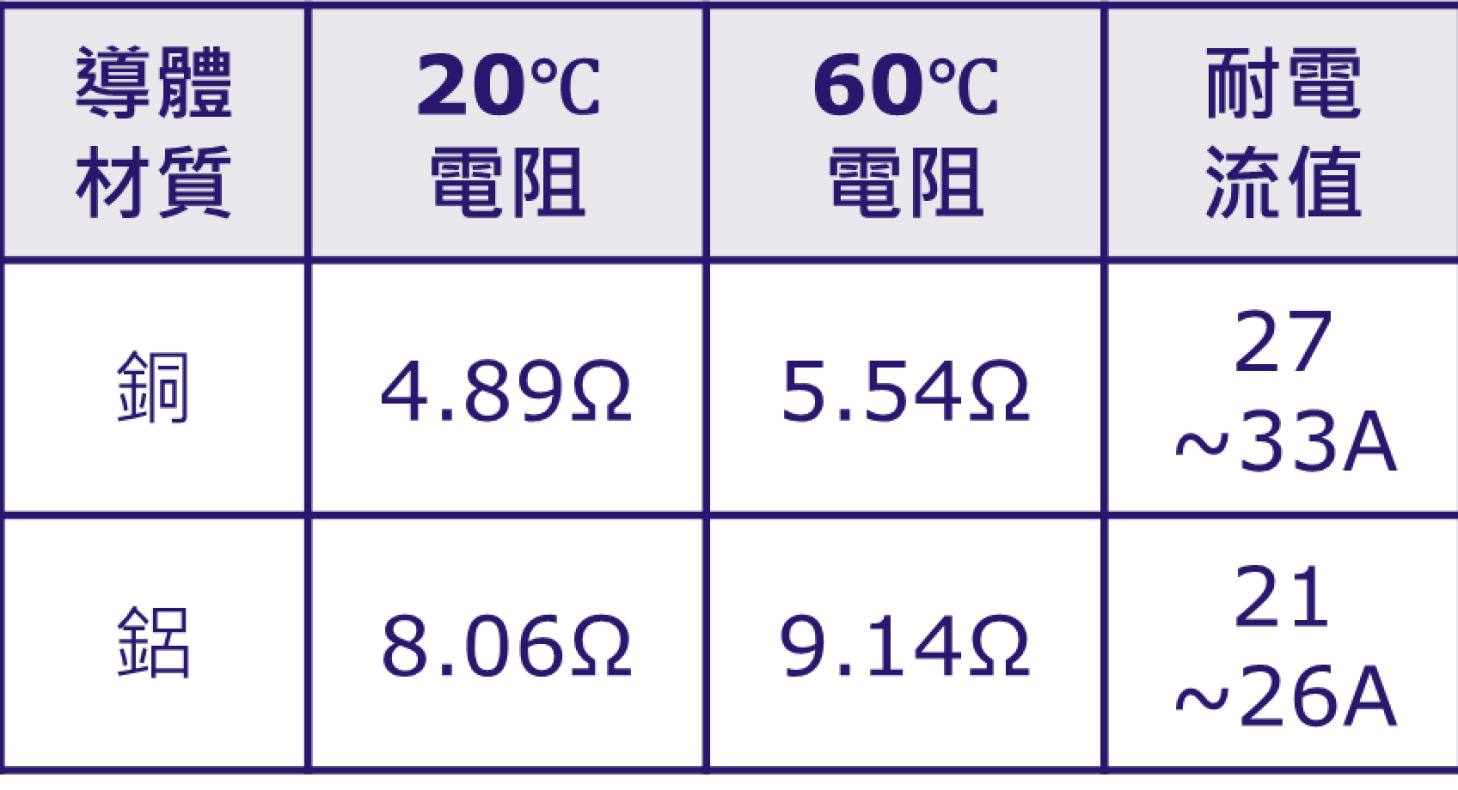 3.5平方銅與鋁導線電阻值與耐電流對照表