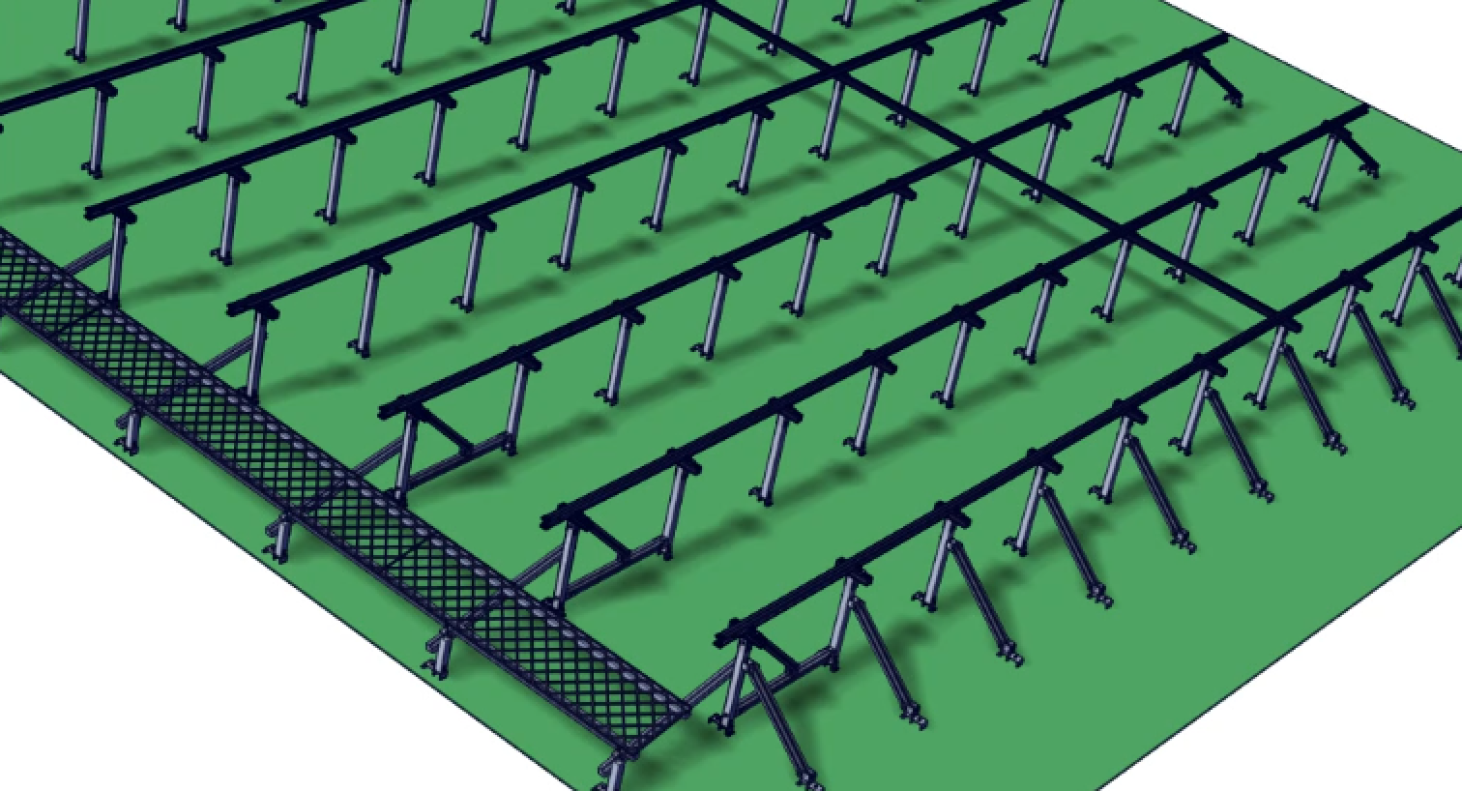 與其他結構體(立柱、斜撐、步道)一起組合成為桁架式結構